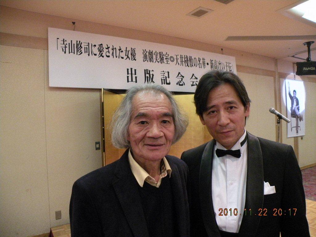 当日は著者の山田勝仁氏を始め新高けい子嬢、発起人の榎本了壱/J・A・シイザ―/高取英/萩原朔美/蘭妖子、そして世話人の九條今日子/森崎偏陸/笹目裕之諸氏等かつての天井桟敷時代のそうそうたるメンバ―が出席するらしいが寺山さん曰く「来る者は拒まず、去る者は追わず」誰でも参加出来るそうだ。